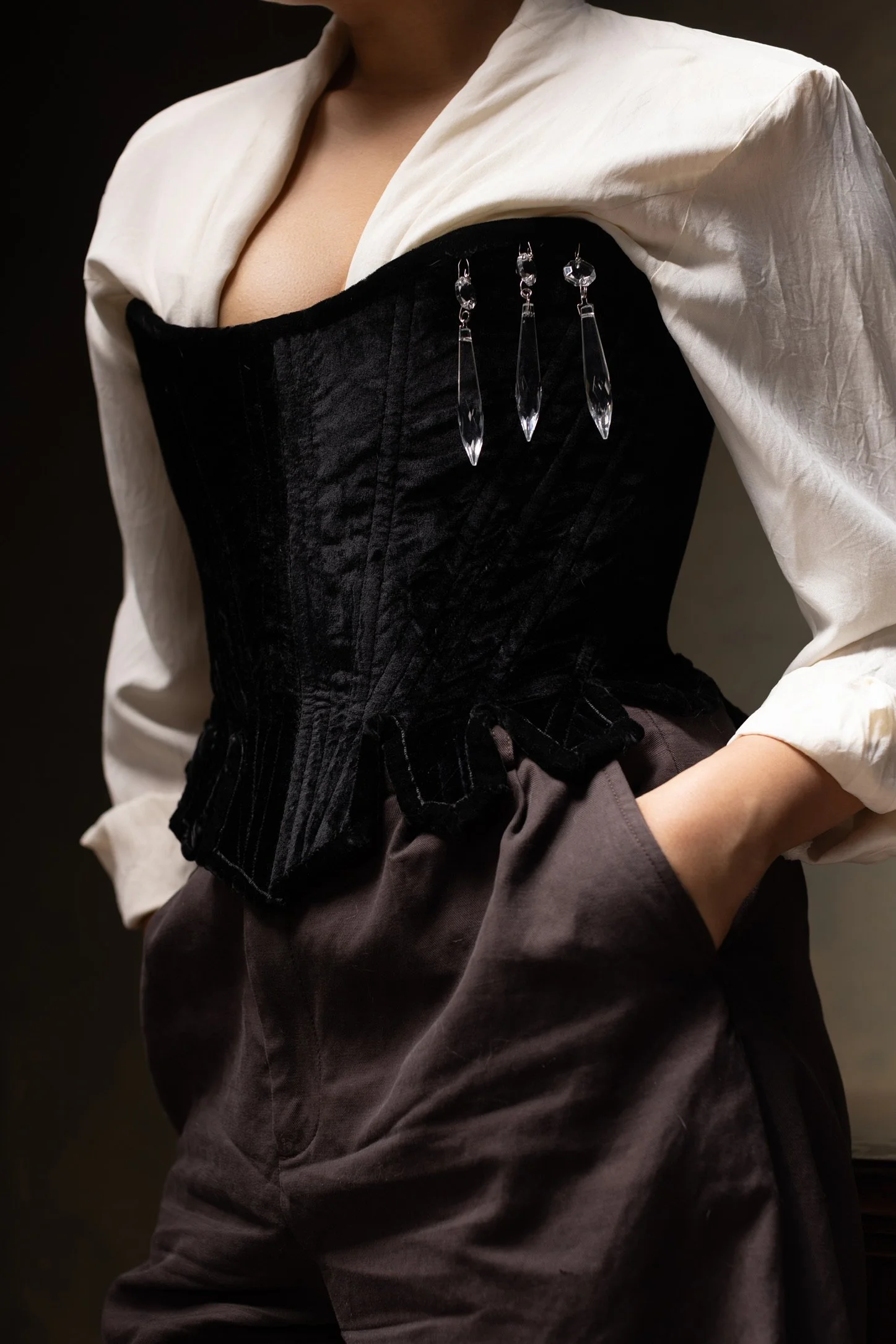 Deeply rooted in the traditions of 17th- and 18th-century stays, each corset embraces the cone-shaped silhouette and historical construction principles of that time period.